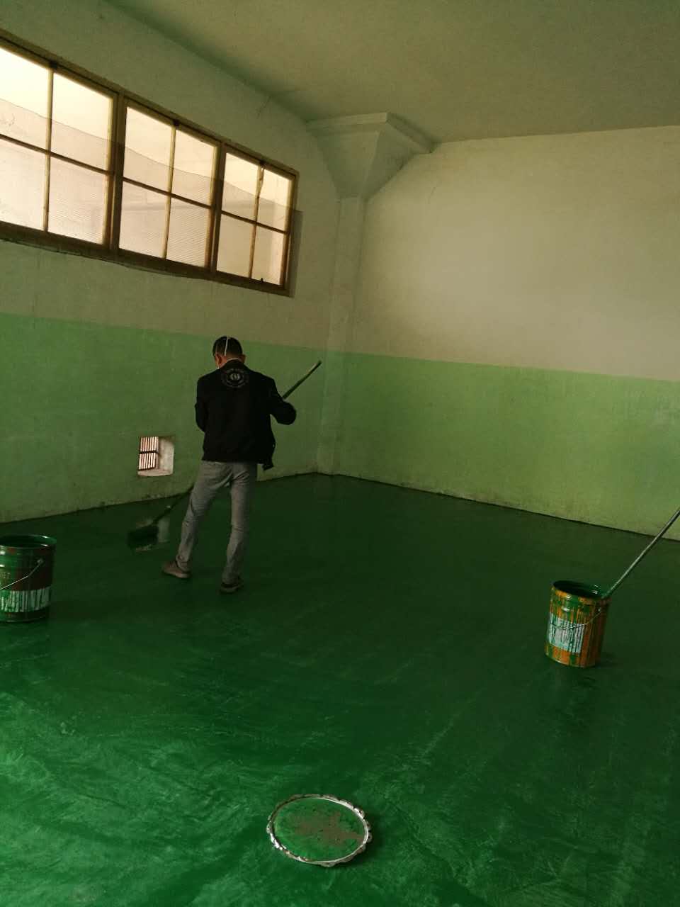 西力公司工人正在進(jìn)行環(huán)氧地坪施工中